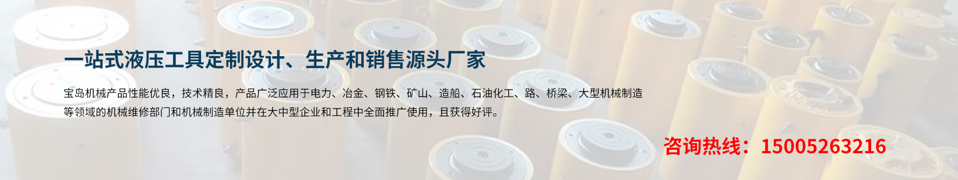 泰州市寶島機(jī)械制造有限公司位于長(zhǎng)江三角洲著名的工具制造基地 -- 江蘇泰州。京滬、寧通高速公路,新長(zhǎng)、寧啟鐵路貫穿全境。交通運(yùn)輸條件十分便利。 BDYYJX寶島機(jī)械制造公司專業(yè)生千斤頂、液壓千斤頂、電動(dòng)液壓千斤頂、大噸位千斤頂、薄型千斤頂、橋梁千斤頂、同步液壓千斤頂、空心千斤頂、自鎖式千斤頂;液壓螺母、液壓螺栓拉伸器;液壓扳手、電動(dòng)(手動(dòng))液壓扳手;液壓彎管機(jī)、電動(dòng)(手動(dòng))液壓彎管機(jī)、液壓彎排機(jī);試壓泵、電動(dòng)試壓泵;軸承加熱器、微電腦軸承加熱器、感應(yīng)拆卸器;液壓拉馬(拔輪器)、電動(dòng)小車式升降液壓拉馬;螺帽破切器、液壓沖孔機(jī)、液壓平彎?rùn)C(jī)、液壓開孔器、母線加工機(jī)、電動(dòng)液壓升降(平臺(tái))機(jī)等液壓工具。 是國(guó)內(nèi)液壓機(jī)電業(yè)配套的綜合性企業(yè),服務(wù)于國(guó)內(nèi)各類大中型企業(yè)。 寶島機(jī)械產(chǎn)品性能優(yōu)良,技術(shù)精良,產(chǎn)品廣泛應(yīng)用于電力、冶金、鋼鐵、礦山、造船、石油化工、路、橋梁、大型機(jī)械制造等領(lǐng)域的機(jī)械維修部門和機(jī)···